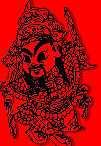 门神,传说是能捉鬼的神茶郁垒。东汉应劭的《风俗通》 中引《黄帝书》说:上古的时候,有神萘郁垒俩兄弟,他们住在度朔山上。山上有一棵桃树,树荫如盖。每天早上,他们便在这树下检阅百鬼。如果有恶鬼为害人间,便将其绑了喂老虎。 后来,人们便用两块桃木板画上神茶、郁垒的画像,挂在门的两边